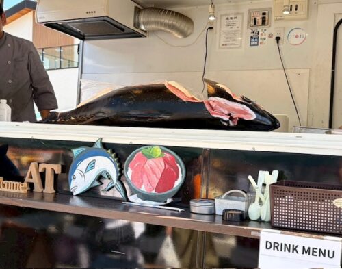美味しそうなお店がいっぱいですが、解体されているマグロに抗えず。