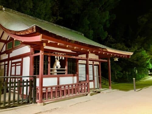 夜に見ると水面に映る社殿がより美しく感じます。