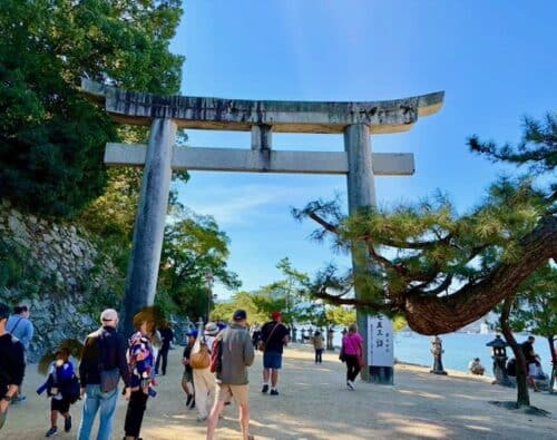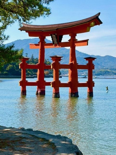 船から大鳥居を見ると、迎えられている感じがして嬉しい気持ちが込み上げてきました。