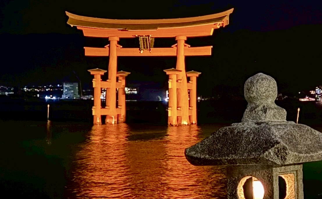 夕食後にライトアップされた、厳島神社を訪れました。